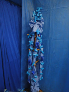 giz pastel em TNT de 2m cada (pétalas da flor) – azul amarelo e vermelho. As